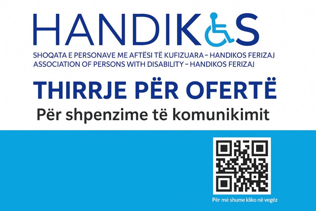 Shoqata e Personave me Aftësi të Kufizuara – Handikos Ferizaj, shpreh interesimin për të lidhur një kontratë kornizë një (1) vjeçare, për shërbime të komunikimit  .